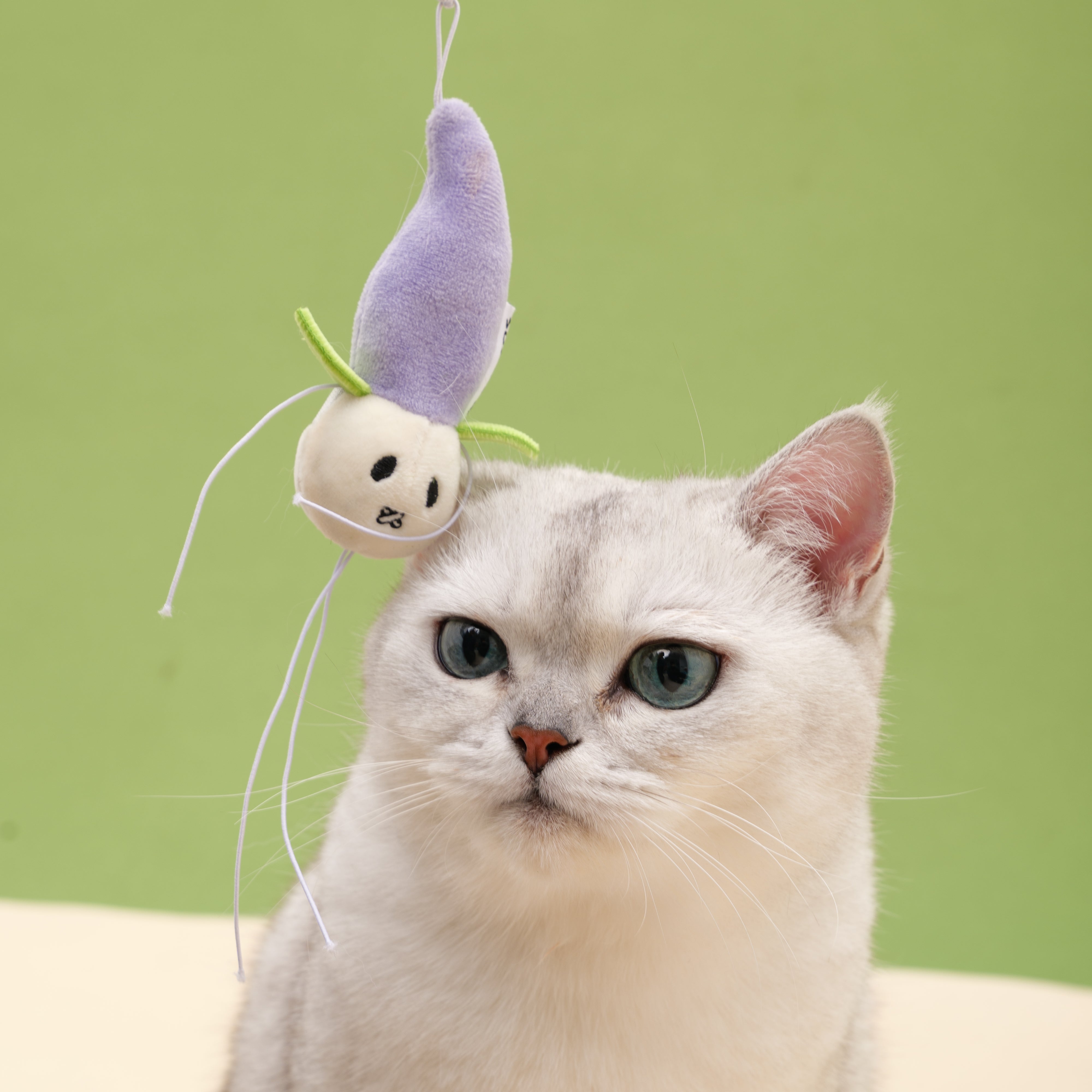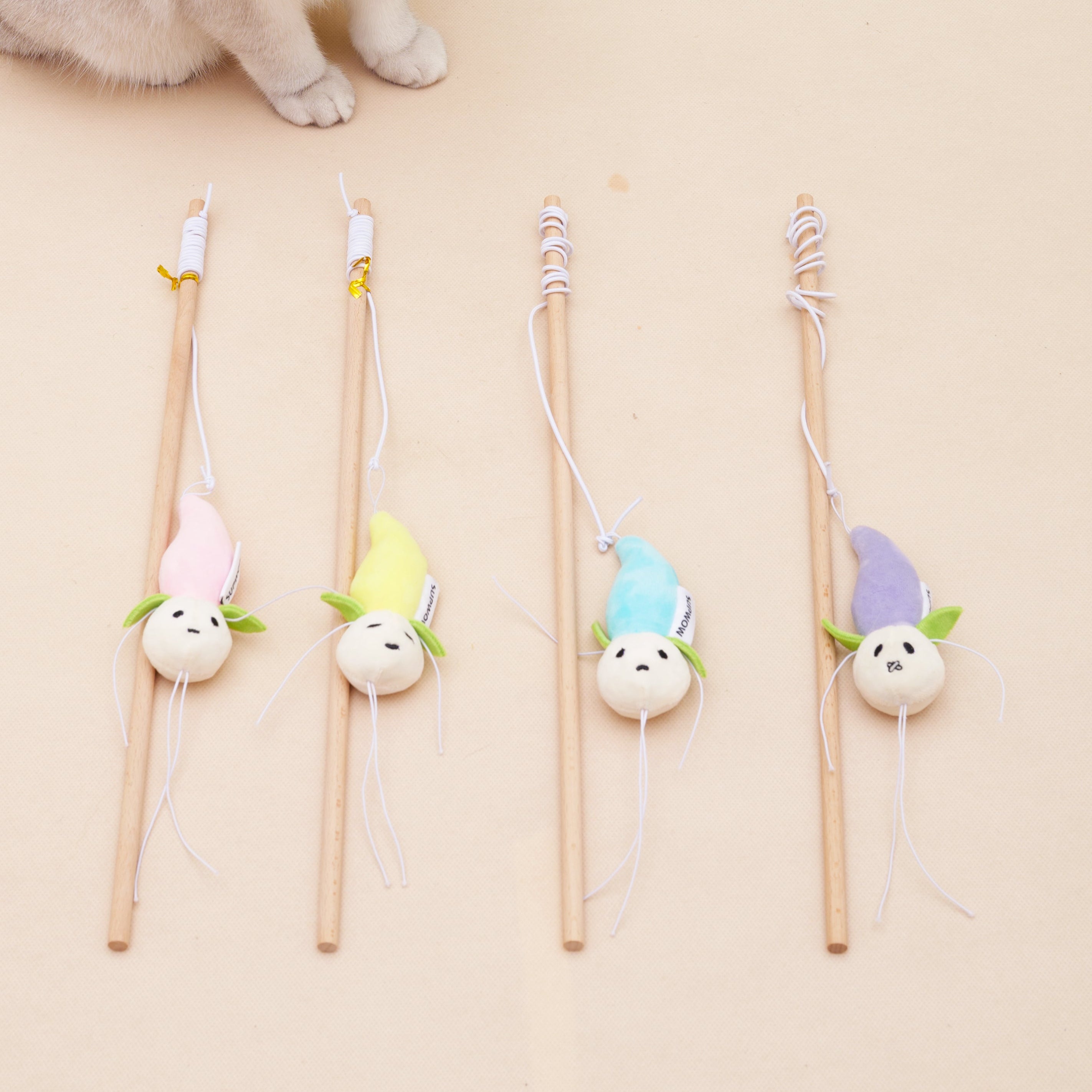 Flower Bud Cat Teaser-Squeaky Plush Cat Teaser with Beech Wood Handle