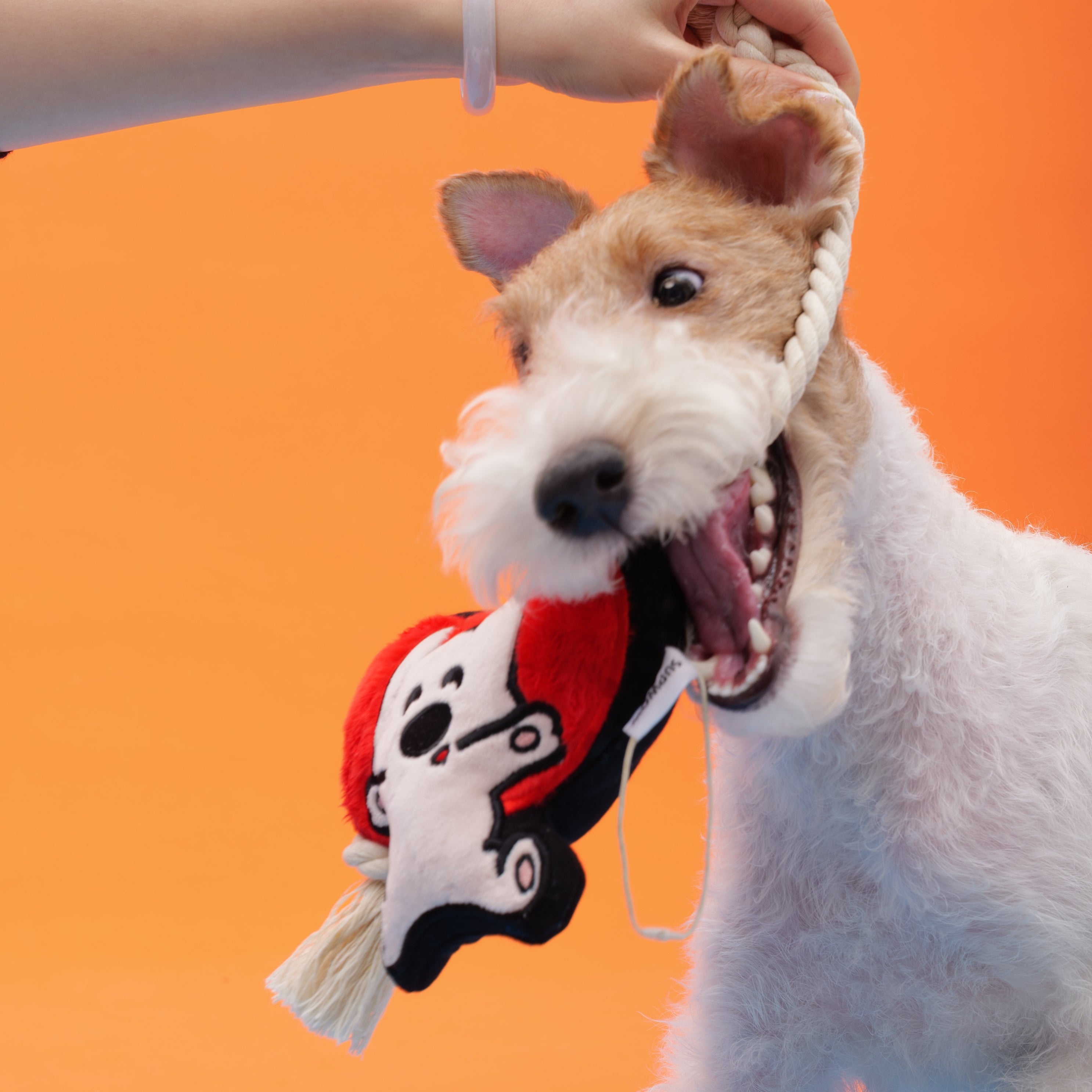 Niki Dog with Heart Tug Toy-Tug Toy with Canvas Knot and Squeaker
